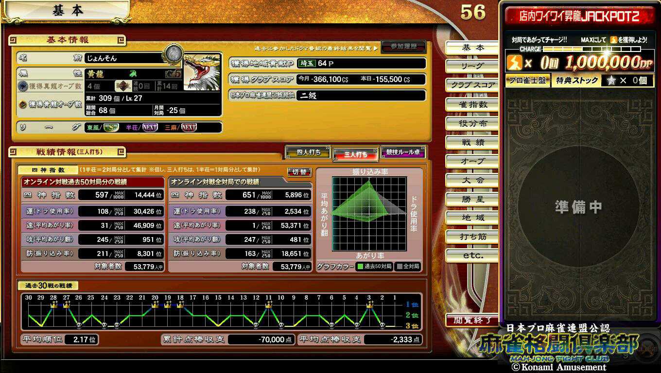 秋刀魚がネクストだったので一週間ずっと秋刀魚でした。 結果はオーブ-35個のスコアは-500000ちょいでした。 まぁ色々考えやったけどダメなときはダメですね。 とりあえずスコアはでたので、なれないことはせず、おとなしく四人うちで借金返済していきます。