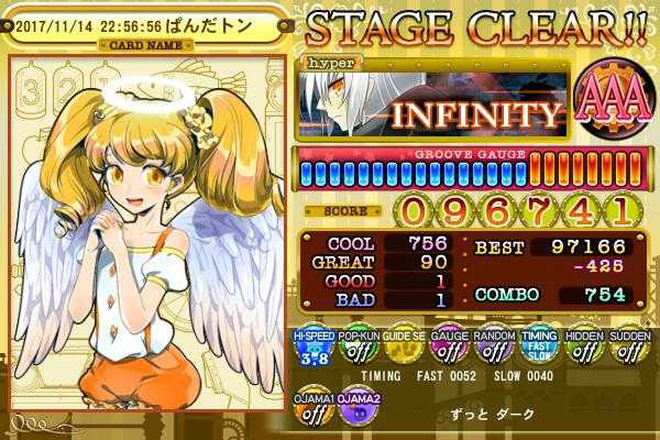 INFINITY H BAD1。パフェ狙いにいったのに。
