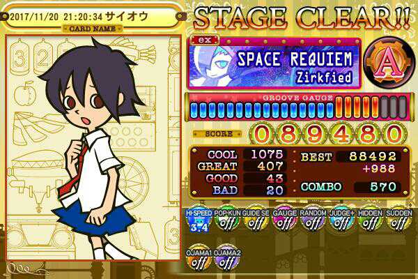 最後の〆! と思ったのですが、久しくやってなかったので「ミラーだったっけな?」と思ってミラー付けたら失敗したので正規でやり直しするハメに。 最初のドラムン地帯?でBADハマりしなかったので、勢いそのままに なんとか伸ばす事が出来ましたヾ(*´∀`*)ノ 案の定腕が死んだので今日はこれにて失礼! ≡┏( ^o^)┛