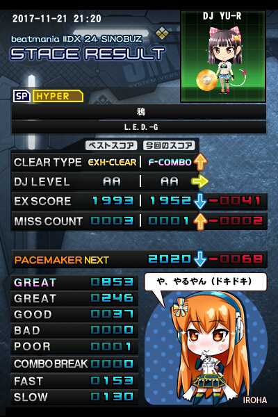 【右片手】(1P側SP正規)鴉(H)[表記レベル10]初フルコン 右片手あんみつなし正規フルコン1909個目 右片手あんみつなし正規レベル10フルコン23個目