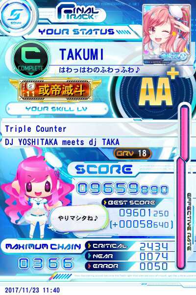 Triple Counter【GRV】結構伸びました♪もうすこし鍵盤のミスを減らせばAAAいけそう!!!!