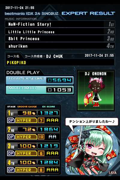 フォロワーさん 大会DPH リベンジ(笑) 右乱です リトプリ何とかAA乗せました🎵 相変わらず手裏剣は楽しいです(((o(*゚∀゚*)o)))