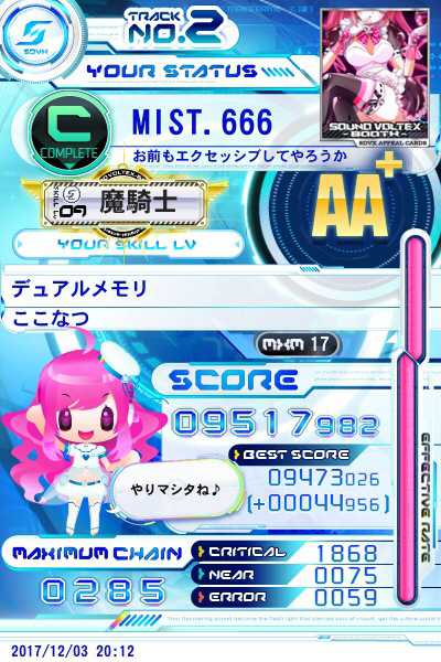 片手出張の着地位置があやふやすぎてだな。 確信的にスコア伸ばせる手応えではなかったし伸び幅も精度誤差程度っぽいが、それでもAA+に届くか届かないかはだいぶ気分違うよ。