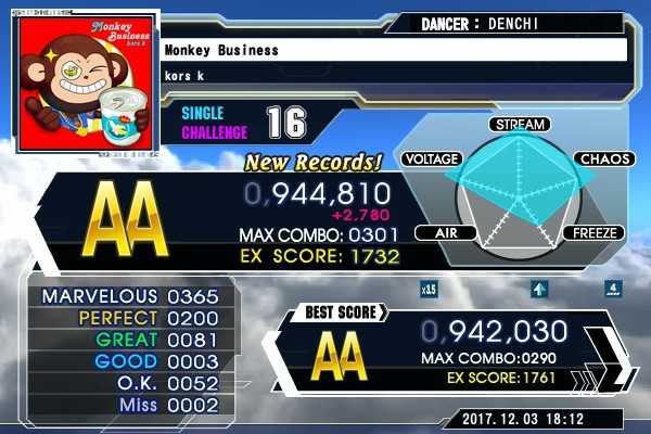 上げ忘れリザルト② SP鬼猿ライフ4クリア! 最初にやったエクストラ専用曲だから思い出深い