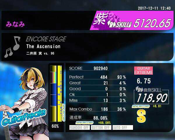 ベースがキツいならギターで頑張ればいいじゃない! とか言ってたら1発で旧枠トップになりおったwww あの3連が全部繋がると思わなかった(´・ω・`)