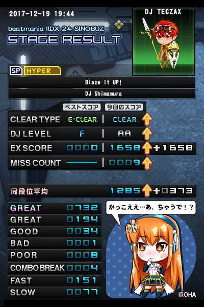 初ノマゲクリア(・∀・) 今作では、easy止まりだった譜面を より多くノマゲクリアにできたと思います 自分、よくやったよ・・・(´;ω;`)