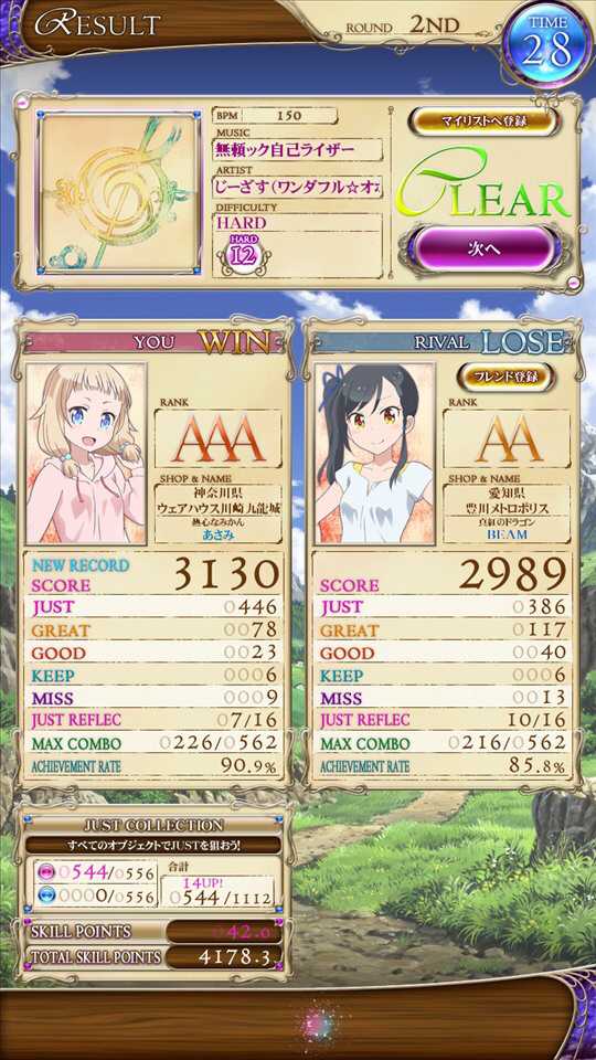 昨日のリフレク(。・ω・。) BEAMさんとマッチングしました✨ (=´∀`)人(´∀`=) ホワイトハードはなかなか難しいですね💦 いつもハードでやってましたが、こっちも楽しい! また是非マッチングお願い致します! (*´ω`*)ゞエヘ