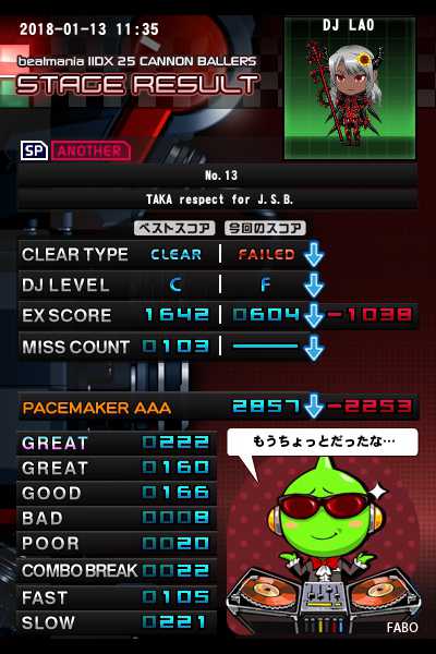 No.13(SPA)乱難、対称トリル地帯抜けたけどそのあとちょっと行って落ちた。意外と抜けても高密度地帯が続くから対称地帯抜けてもまだまだハードは遠い