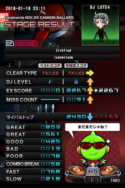 最後の最後で縦連の入り遅れて76%ェ…もうやだこの譜面(中盤の縦連は繋がったのに)