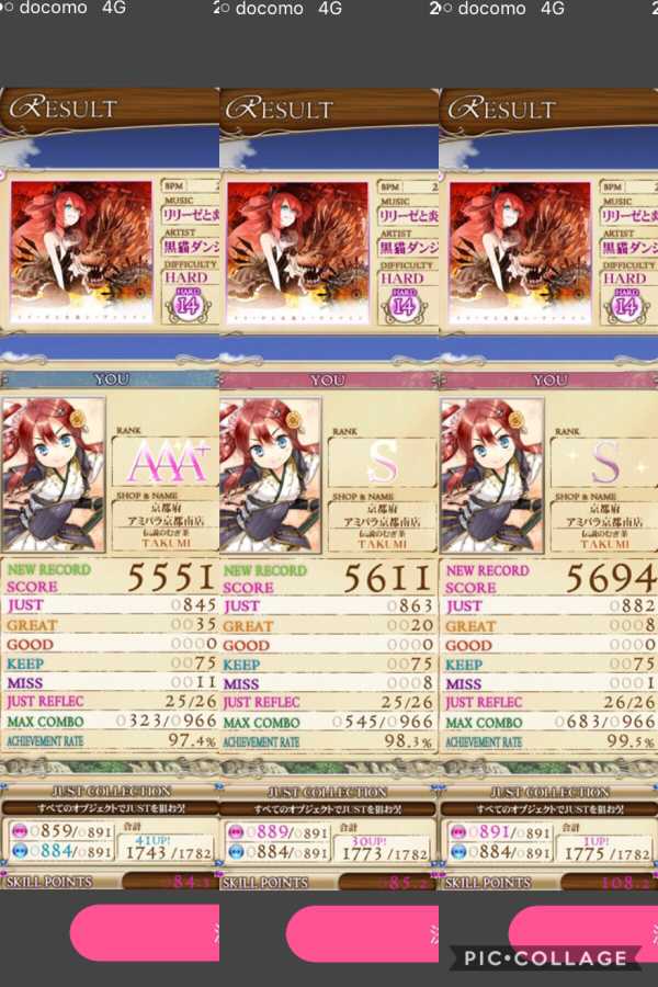 リリーゼと炎龍レーヴァテイン【WHITE HARD】 WHITE HARD解禁して以来一度も触れてなかったのでプレーしましたwちなみにARは95・8%でやめてましたw 1回目はS乗りませんでしたが2回目以降はS乗り始めて最終的に99%乗せることができました〜♪次はフルコンボ取りたい!!