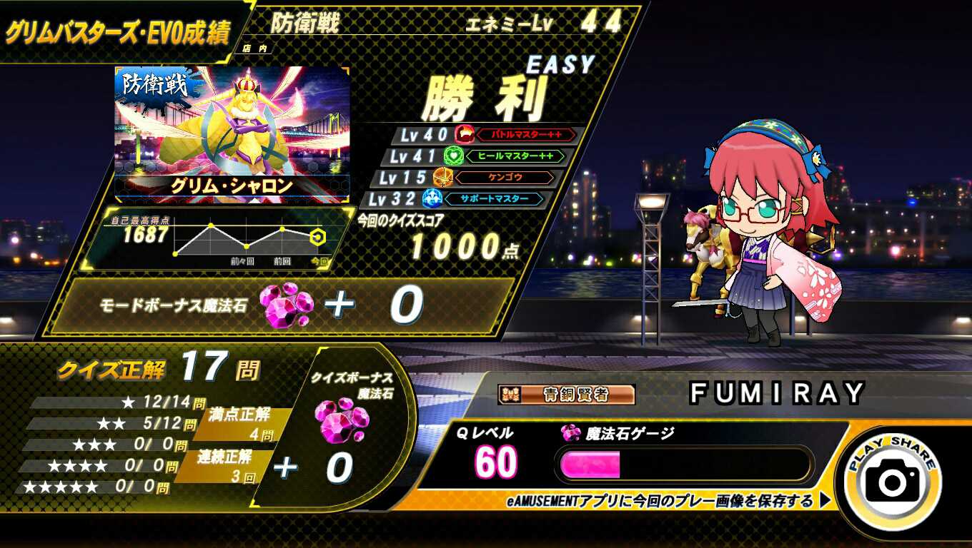 オンライン対戦でNORMALでズタボロにやられたものの、店内対戦で3回ともEASYきたので3回とも勝てました………!! 2回目スコアがジャスト1000点だったのでのせておきます…………!