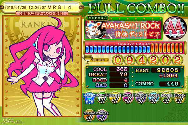 【#popn】 本日のリザルト1。スコアチャレンジ楽曲でFULLCOMBOにできたのは大きい。