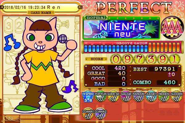 ?ハピバ記念のニエンテ計画。ニエンテとリナシタどっちが好きかって聞かれたら自分はニエンテって答えると思います。なんとなくな理由だけど(ぇ)。N譜面は±0かぁ。