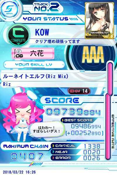 3/22日分、ルーネイトエルフ(EXH)スコアUP、14鳥追加