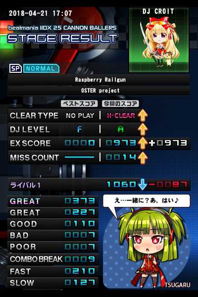 やっと出現できました。 オスターさん曲、ハードだとちょっとしんどいですが楽しいです。 無事にハードクリア出来ました。