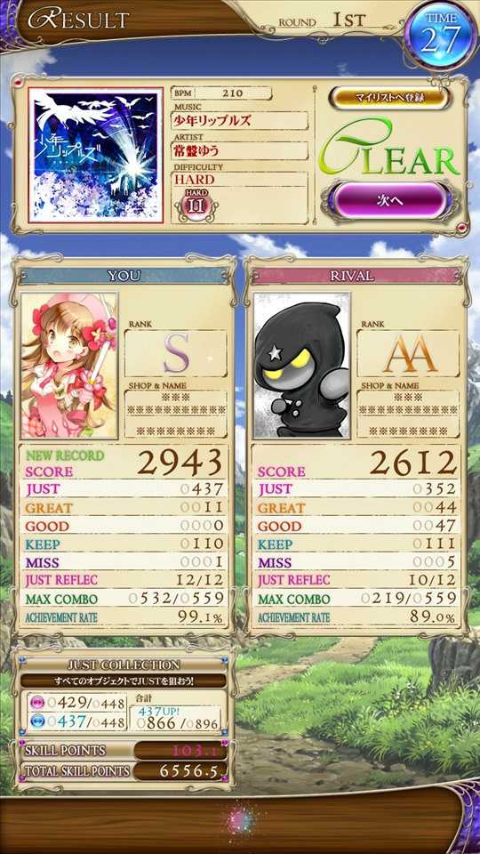 #reflecbeat jubeatの例の2曲はRbにも収録されています。 少年リップルズはまさかのKEEPミスorzorz NEW RECORDなのに勿体無い。。