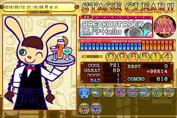 ブレイクアウトロックEXはいう程縦連打要素はありませんでしたね(ぇ)。それにしても単押し8分連打の最中に16分が混じると思わんかった。(ビックリ)