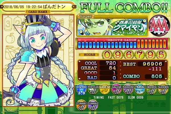 さらにワン切り編は続く…。今度はパフェorz ウマイヤンH フルコンAAA。またパフェ逃した。