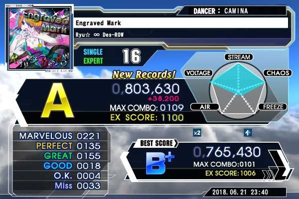 2曲連続レベル16にて、16でも楽な部類とは言えスコア800kにのせられたのは非常にうれしい