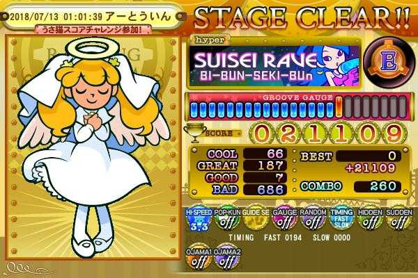 彗星レイヴH 21kクリア成功。 ノーマルよりもスコア低いってなんだかなぁ。