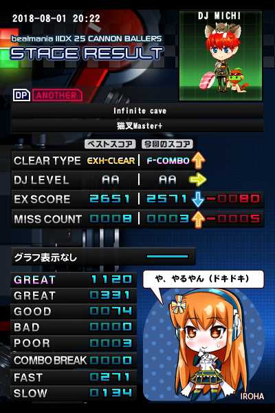 Infinite caveDPAフルコン! FLIP両鏡で真ん中ゴチャっと来たのを無心で押す作業。 1切りしてから繋ぐのに数年かかったけど、とりあえず一段落。