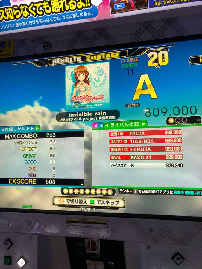 invisible rainあこ繋がったのに最後遅くなった箇所で切ってもうた。後2ノーツやったのに