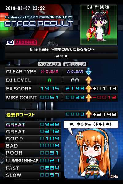 Eine Haube DPA 白、とスコア更新。あれこれやったけどF左鏡が鉄板かなー。2P階段が外から内に入るし、何よりも中盤のピアノ両螺旋が押しやすい。