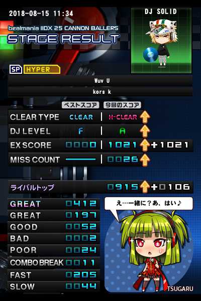 Wuv U 灰 ハードクリアA乗り BGAは汎用はやめて smooooch・∀・に出てくる子達みたいなんがいい_(ゝLꒊ:)_