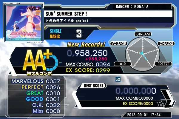 Lv3 SUN2 SUMMER STEP!(SP/BASIC) とりあえず青フルコンいけました。 逆に言えば、good1が勿体なさすぎる。 この公式編成は分かりやすいですね。