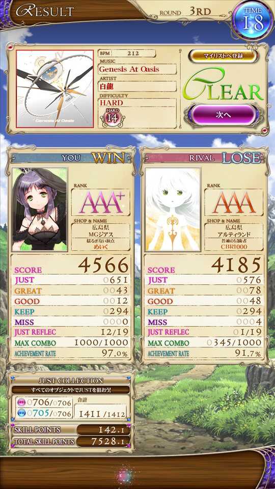 CBR1000さんマチありでした。 この忙しい譜面ではJR抑えられませんでした(;_;) フルコンするも、スコアも更新できず。