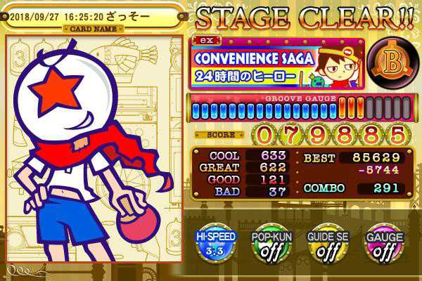 黄ばみ半端ねぇけどクリアできました〜!新規45! やっぱり難しくても割と拾えて演奏してて楽しい曲は最高ですなぁ〜(っ*’ω`с)