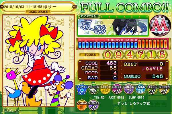 ほりーのしろポップンさんのe-amusementアプリ投稿詳細