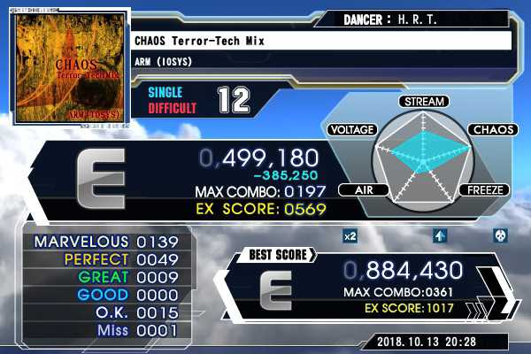 #CHAOSフルコンボチャレンジ 3日目。いきなり冒頭のビシステ地帯で銀踏んじゃって落っこちた。