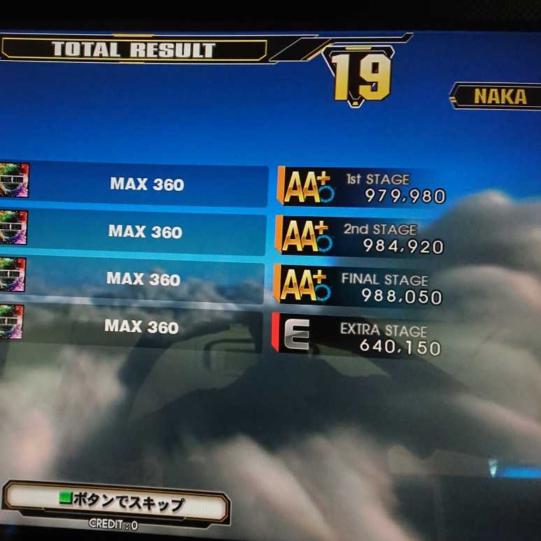 MAX360たち スコアは少しずつ伸びていってるし、フルコンは安定してきてるのに…何故に青コンまみれwww 踊譜面、まさかの濁流地帯に驚きつつも抜けた先の低速地帯にて撃沈w BPM360の4分=BPM180の16分相当、つまり足16の鬼隅田川と同じことさせられてることに…足15????
