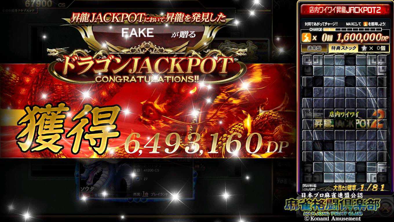 やりました!初めてのドラゴンJACKPOTを獲得したぜ〜!気持ちいい〜! おかげで六段に昇格しました!