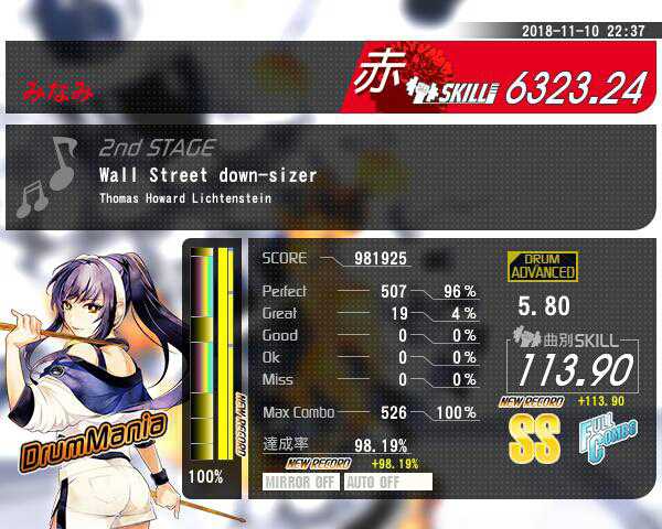 フラッと選んだらサクッとフルコンできちゃった(›´ω`‹ ) そんなに速くないからスネア連打の練習のとっかかりになってくれるのかも(´・ω・`)