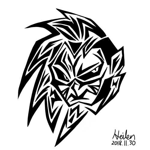 The Rebellion of Sequencer / DJ Myosuke のキャラをトライバル風に。Myosuke氏を模したゴツかわいいキャラと攻撃的な調子がイカした曲です。 模様で隙間を埋める作業は無心になれますね。あと今回下絵段階で下敷きを忘れたら、ノートに裏移りが結構あったので反省(汗)