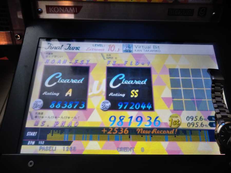 生存報告がてら久しぶりにjubeatやってきました(^^♪ Virtual Bitめっちゃ好きやわー(・∀・) 3回で鳥乗りました(≧▽≦) これ、10.3なのかなー???