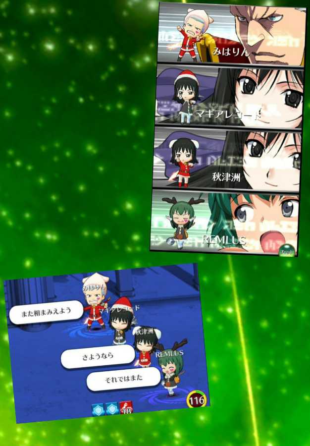 自分「本日の定時マッチング報告♪」 ヴァニィ「赤と黒のサンタがハーフアンドハーフ♪」 自分「クリスマスらしい鮮やか衣装パーティーになりました!」 ヴァニィ「マッチングありがとうございました♪」