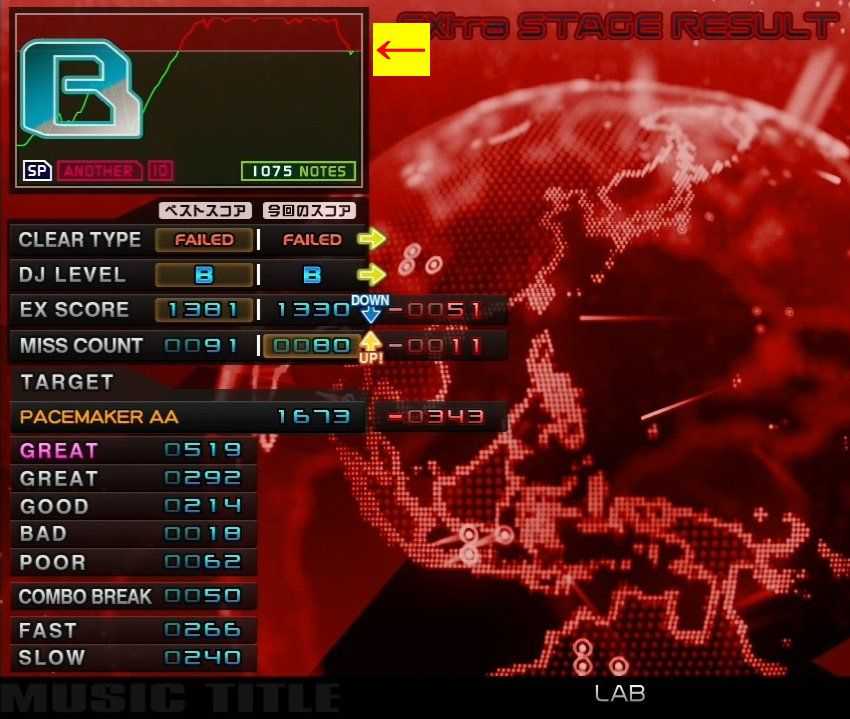 #今日のガハハ ACSP八段課題曲3曲目ことLAB (SPA・Lv10+)、2回目の易トライにて。 えええええええええぇぇぇぇぇぇ・・・。