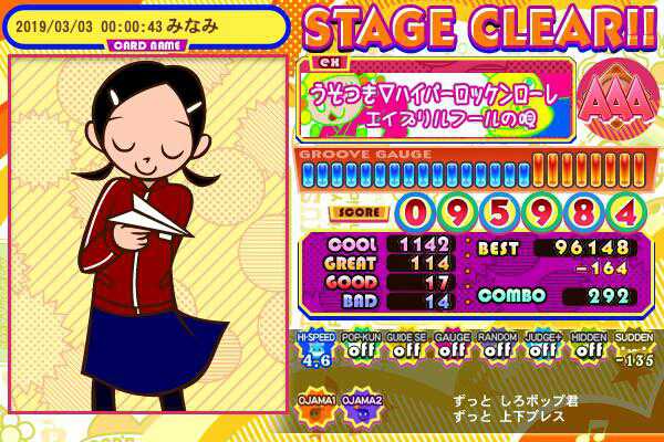 赤の縦連に上手く入れない(´・ω・`) 8分はそれなりに押せるようになったけど細かいところは見直さないとなぁ