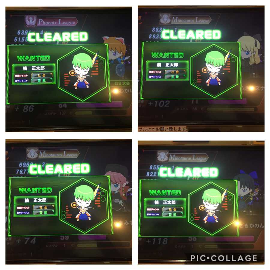 MFCをプレイしてQMAに移動です。 まずは一軍の全カードで楠さんを1回ずつ倒して割引のチャットスタンプを買いました。 う〜ん、楠さんに限らず強力CPUは得意or不得意ジャンルのどちらかに芸能が入っていると大変です。 CPUが得意だとCPU本人が毎回、逆にCPUが苦手だともう1人の相手がそこそこの確率で芸能を投げて来るので辛いです…。 あとこれはまずないと思いますが、1回くらいは強力CPUの最下位を見てみたいです(爆)