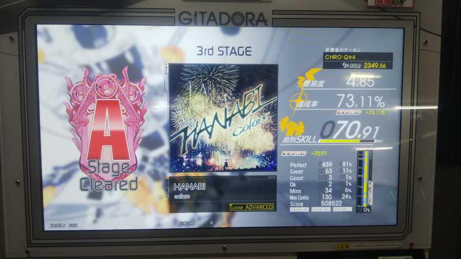 HANABI (ADV, GUITAR) 最高クリア難易度が4.85に リズムがわかりづらかった