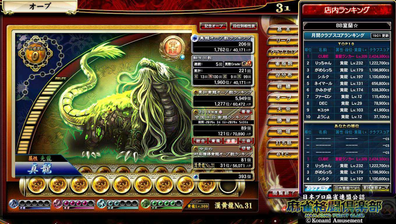 ウッチー出張先から東風少し参戦と本人Twitterからあったので急遽東風も。 本日の東風:1-0-2-0 という訳で先程6回チャンスの真龍クライマックスの続きに(^-^;) 苦手の東風案の定スピード勝負で負け2戦で1000点の和了1回のみで3戦目、ここでウッチーサポ上位直接対決に(-ω-;) オーラスの親番までに2放銃のラス、形振り構わずの食いタンのみでどうにか首の皮一枚繋いで次局配牌ドラ3貰ってもう1回かなと思ったら456の三色確定高め&ツモ一盃口跳満確定倍満チャンス。 安めの跳満ツモって見事ラスから総捲りに成功、転生連続5回目に。(最終形は次の記事に。) 結局ウッチー本人とはマチれずも宝剣票貰えたから御の字(*´ω`*) そしてロン2CUP優勝おめでとうございます(*'ω'*)