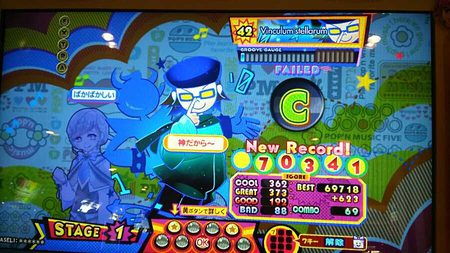 サブカですが、Vinculum stellarum Hがやっとこ70乗った。ものすごくこの譜面好きなんですけど、地力が追い付かない…