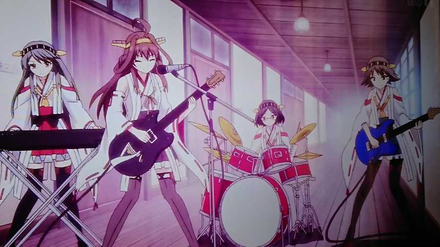 艦隊コレクションにて 引きこもりの人を部屋から出すのに建物の廊下でバンド&ライブをやったら苦情来るわ😅 しかし、金剛型の4人が楽器を演奏するのは違和感がないのと軽音ぽく思えるのは僕だけだろうか…(^_^;)