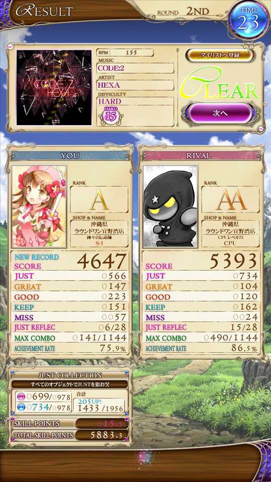 何度もプレーし4回目でクリアする事になりました、ギリギリだったしキツいやり方でしんどかった #REFLECBEAT #悠久のリフレシア