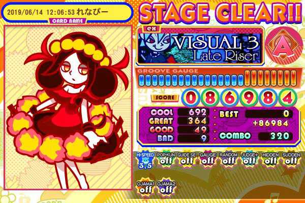 ヴィジュアル3EX譜面初見クリア!*.⋆( ˘̴͈́ ॢ꒵ॢ ˘̴͈̀ )⋆.*