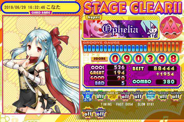 Lv33 Ophelia(H) こちらもフルコン狙いを失敗、同様にAA乗るという事態に。 悔しい。