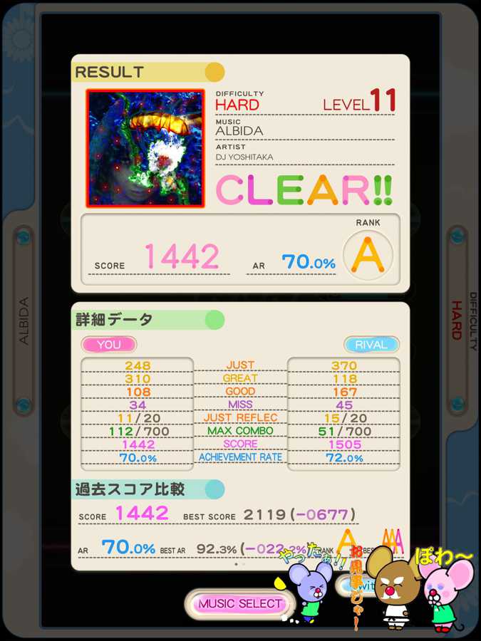 【母のリフレクplus】「ALBIDA」赤11にチャレンジ! おお〜っと11回目でボーダーに滑り込んだーー!! Lv11クリア 第12号となりました♪ 真ん中の休憩あたりで43%ぐらいだとギリギリクリアに届く感じですね♪ (オーダーチャレンジ1)